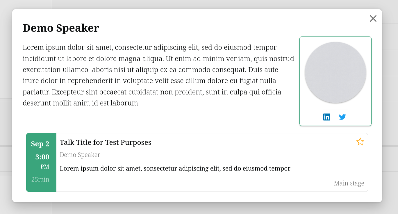 Custom URL fields can now display as linked icons instead of plain text. Configure fields for GitHub, LinkedIn, Twitter, Mastodon, YouTube, Discord, Instagram, and more – they'll show up as proper icons on session and speaker pages. Much easier for attendees to follow these links to connect! If you find yourself missing a platform in our list of possible icons, please let us know and we’ll be happy to add it.